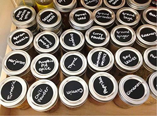 • Chalkboard Labels Pack of 72 Round Chalkboard Mason Jar Lid Canning Labels . Premium Labels for Glass Jars, Food Containers, Kitchen and Pantry Organizing (1.9 Inches Wide, free White Chalk Marker)