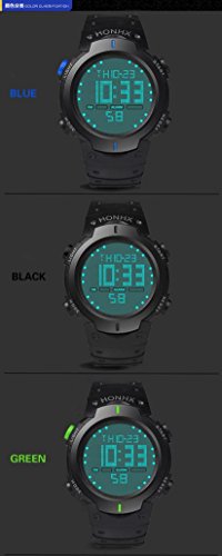 Han Shi Waterproof Wristwatch, Fashion Mens LCD Digital Stopwatch Date Rubber Sport Watch (Blue, L) Item Sku: