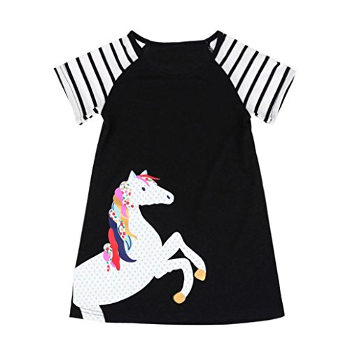 • Honhui Clearance Sale Toddler Kids Baby Girls Short Sleeve Horse Printing Party Dress Summer Outfit Skirt (Black, Age:(2~3years))