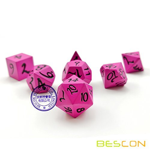 BESCON DICE Bescon Fresh New Solid Metal Dice Set Deep Pink,Metal RPG Miniature Polyhedral dice Set of 7 for Role Playing Games Item Sku: