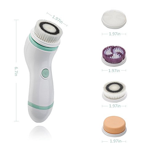 IWEEL Facial Cleansing Brush, Electric Waterproof Skin Face Body Rotating Cleanser Brush Portable Travel Case Deep Pore Cleansing Gentle Exfoliating&Remove Blackhead Acne with 4 Heads Washable Green Item Sku: