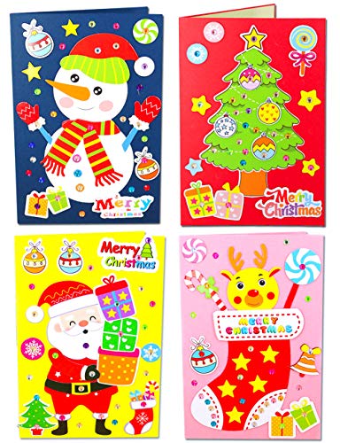 Mimgo-shop DIY Handmade Christmas Cards Making Kits with Envelopes, Paper Craft Christmas Greeting Cards Gifts for Children Including Santa, Snowman, Reindeer and Christmas Tree