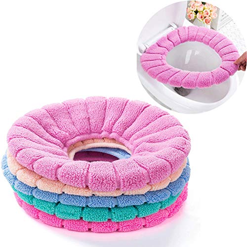 Taylor Gre 5 pcs different color Bathroom Soft Thicker Warmer Stretchable Washable Cloth Easy Installation & Cleaning Comfortable Toilet Seat Cover Pads