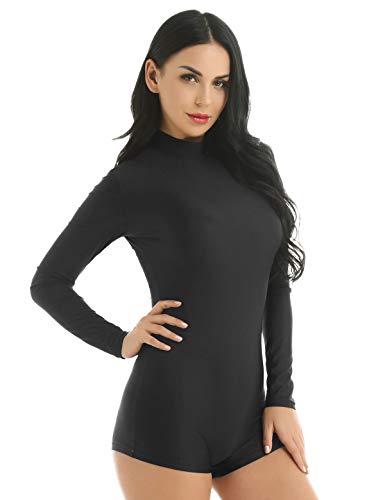 inlzdz Women's Turtleneck Lycra Spandex Gymnastics Dance Long Sleeve Leotard Biketard Unitards Black Small