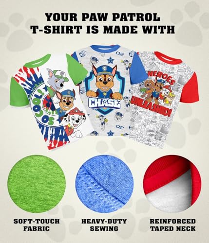 • Paw Patrol Graphic T-Shirts (3 Pack) Rubble, Chase & Marshall Character Outfit Toddlers Birthday Boys 7 B-Gy/Rd-Gy/Gn-W SS